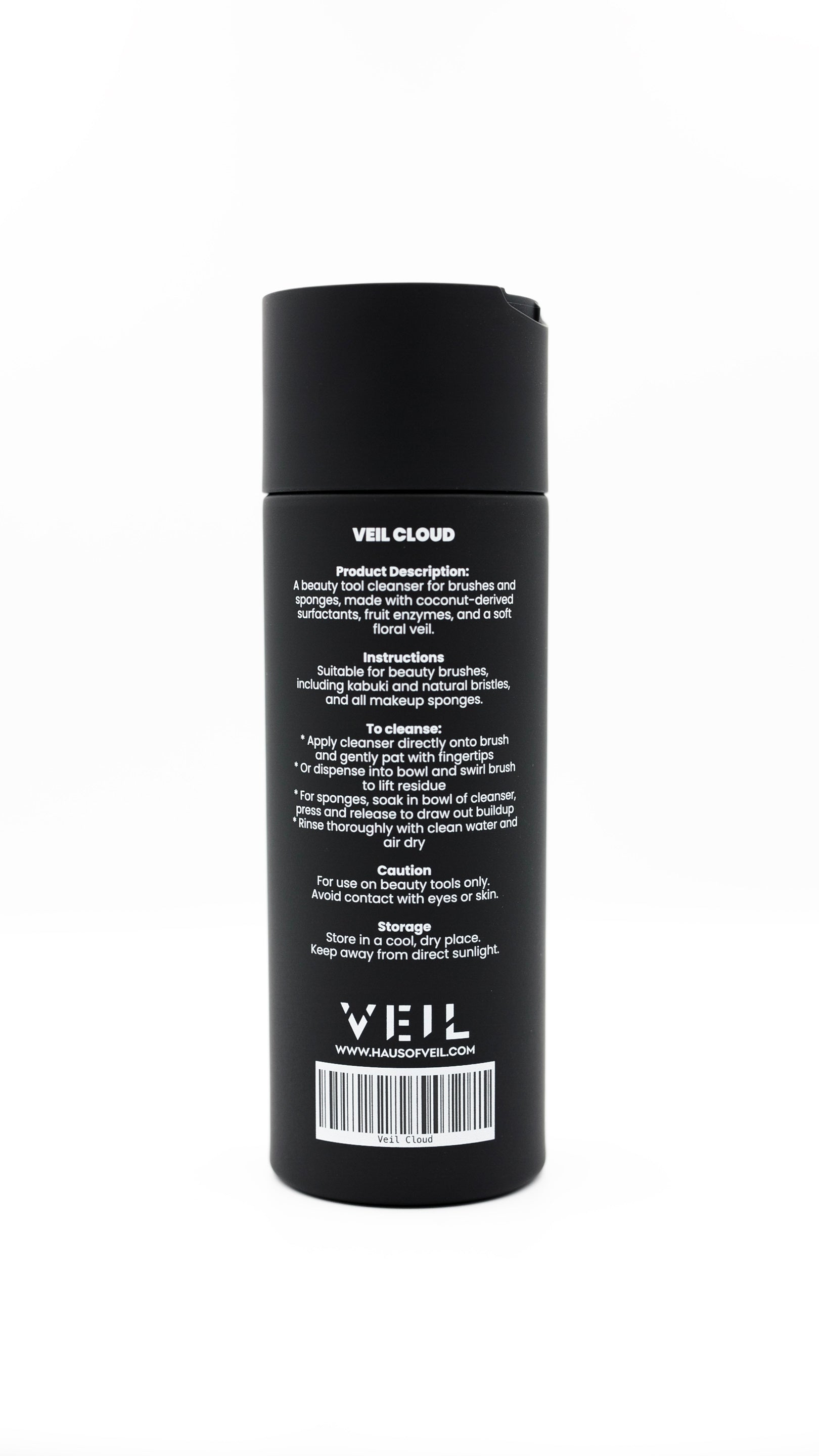 Gentle cleansing for makeup brushes, beauty sponges, and dense Kabuki brushes. Crafted with a blend of coconut oil and fruit enzymes. Veil Cloud lifts makeup residue and oils without damaging delicate bristles, leaving tools soft, conditioned, and beautifully fresh with a light floral scent. Perfect for everyday brush care or deep cleansing of precision tools.